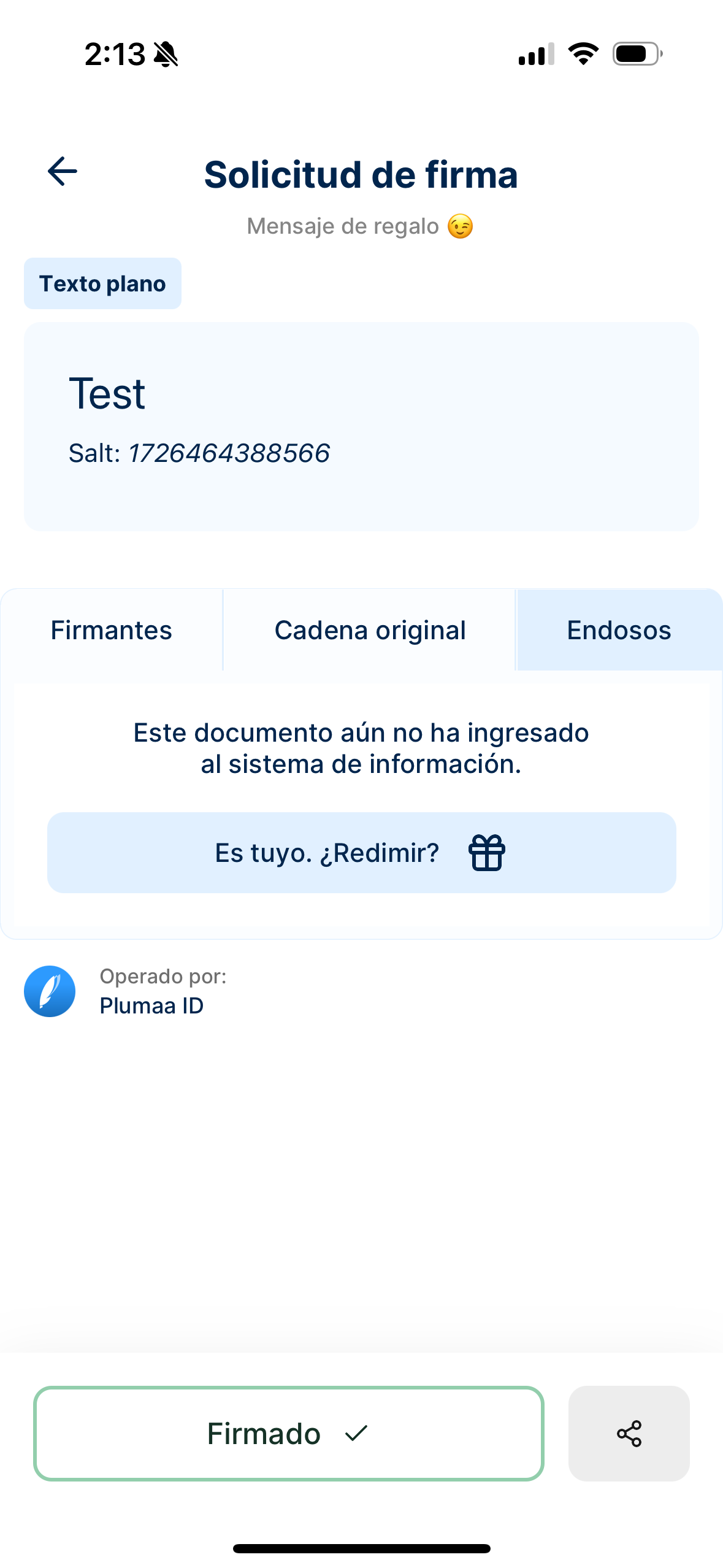 El primer usuario definido en la cadena de endosos podrá reclamar el documento tokenizado a través de la aplicación móvil de Plumaa ID.